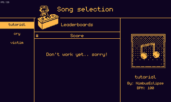 Gostei do jogo! Vi pelo post que deveria ter uma música chamada 'Victim', mas ela não apareceu para mim. Na 'Cry', consegui fazer 39850 pontos.